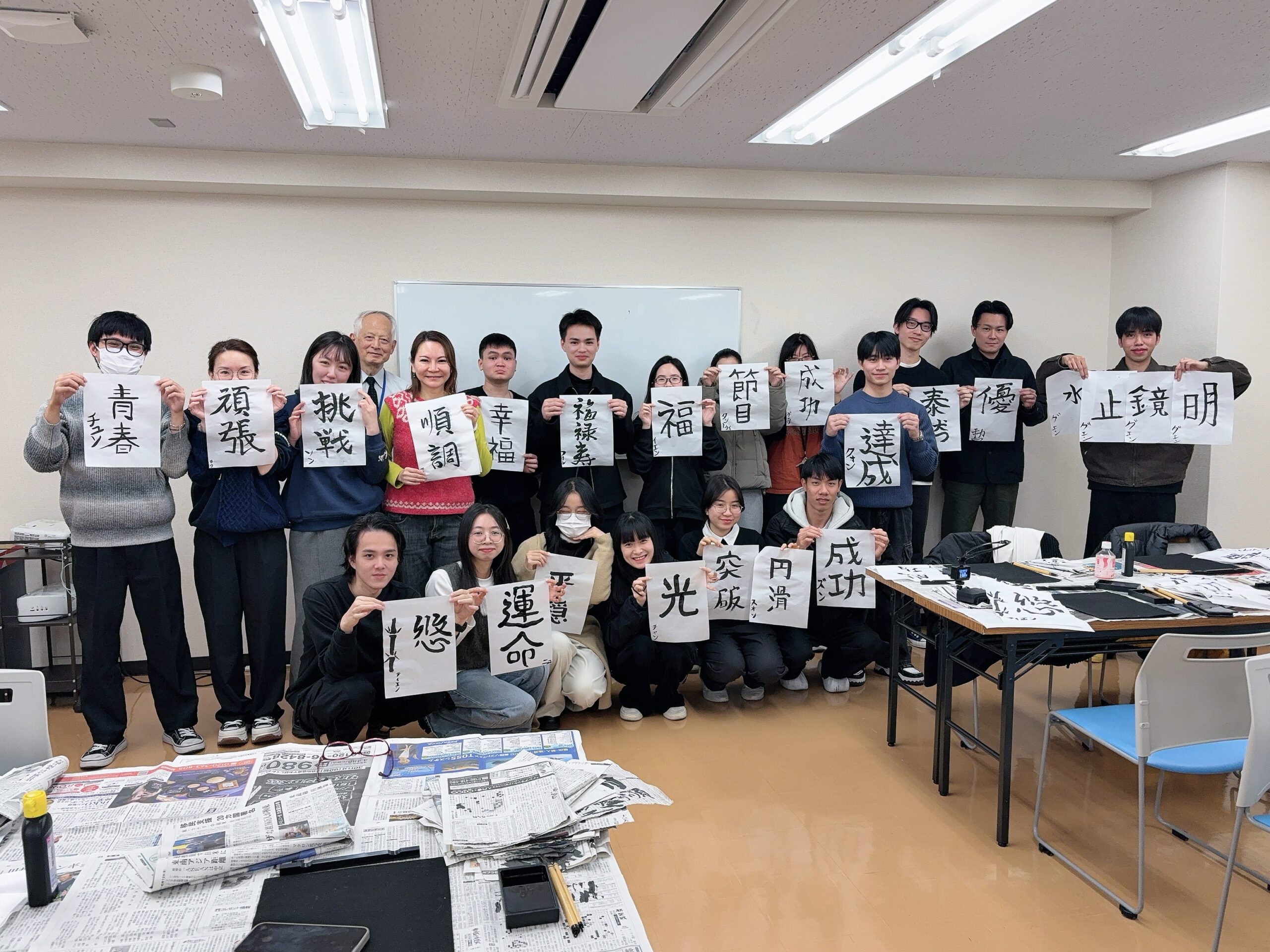 千駄ヶ谷外語学院では、1月15日(木)にクラス活動の一環として、日本の伝統文化である「書き初め」に挑戦しました。