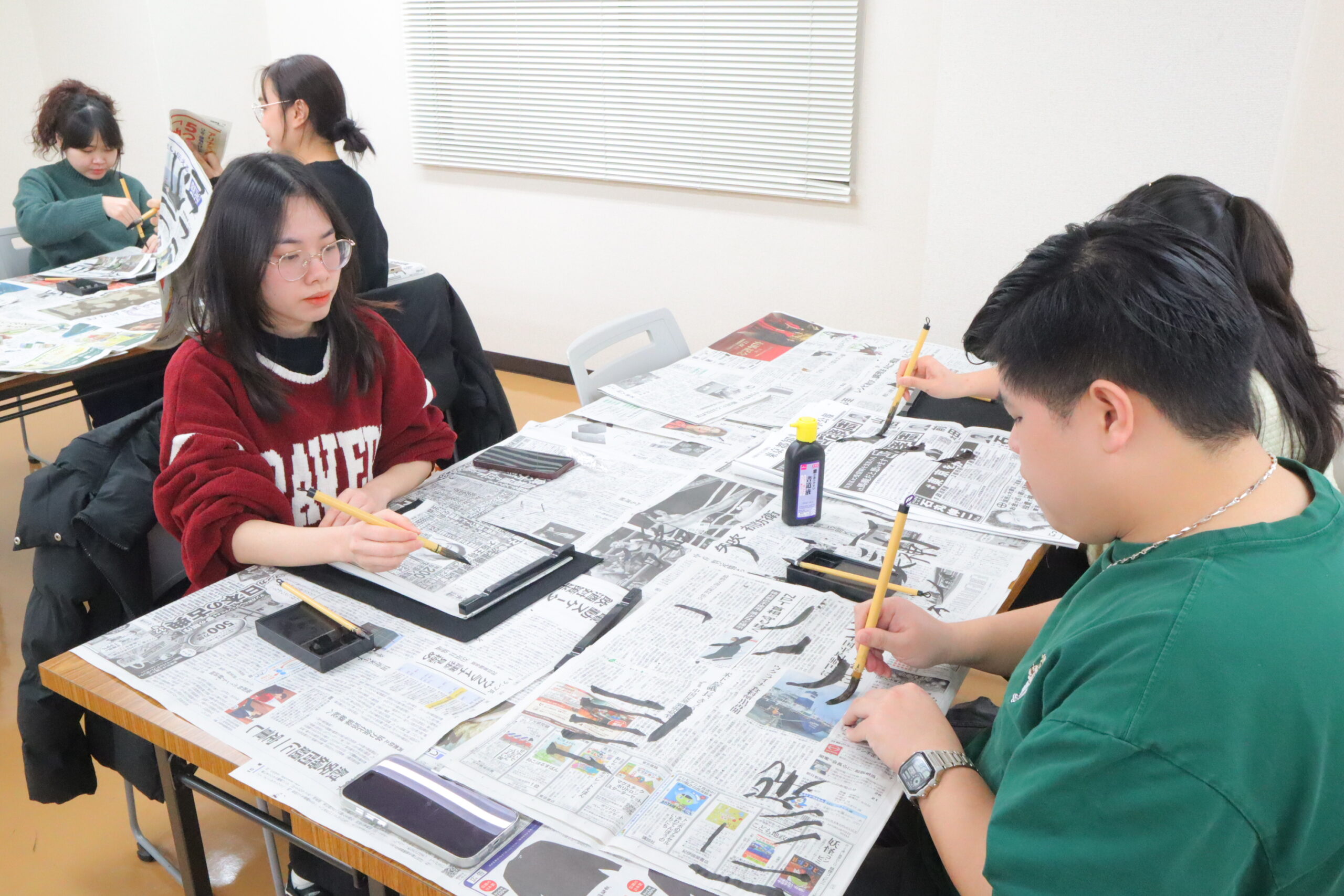 初めて筆を持つ学生も多かったのですが、みなさん集中して、一つひとつ丁寧に取り組んでいました。