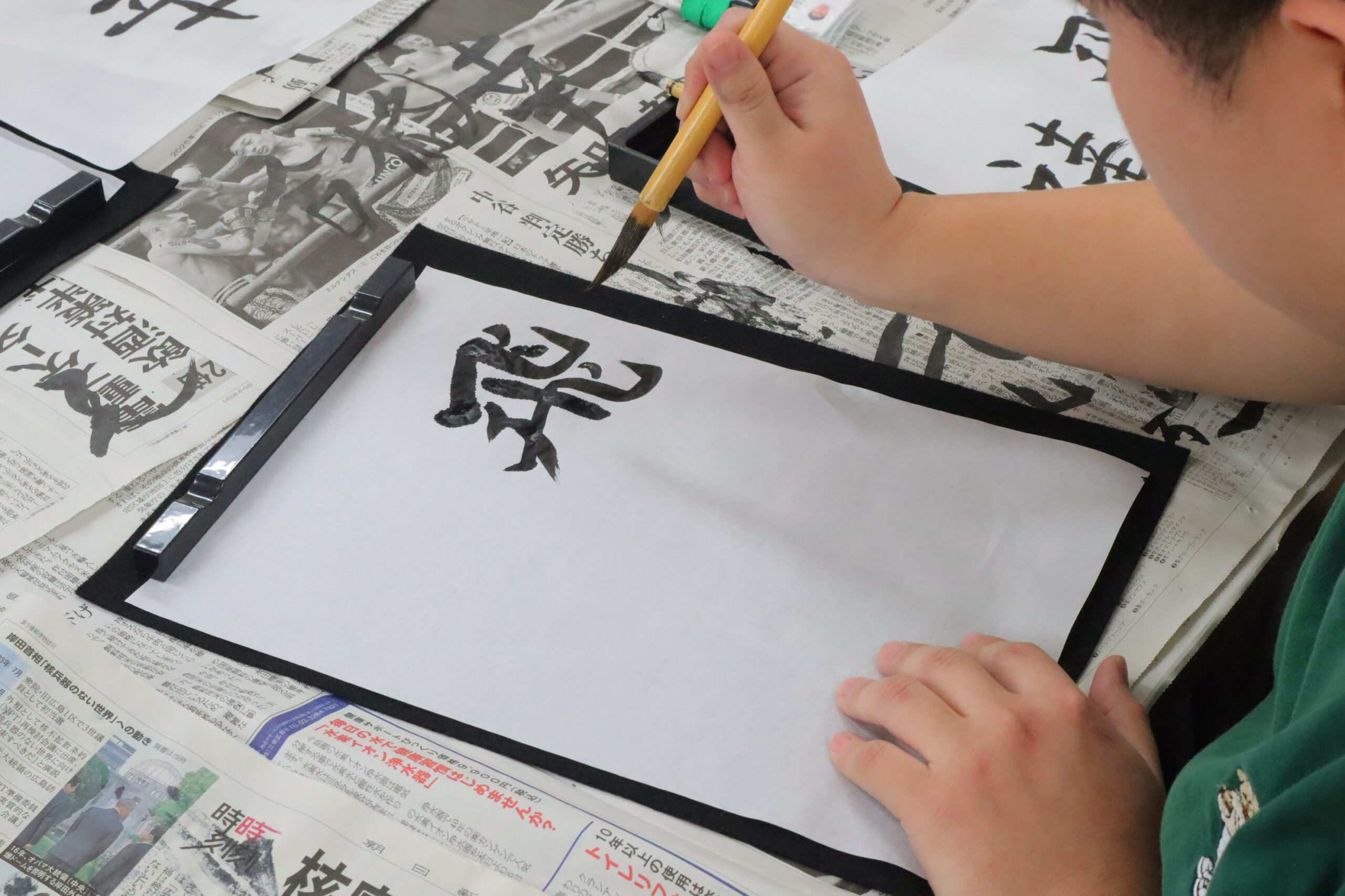 基礎練習のあとは、それぞれが自分で選んだ漢字一文字を何度も練習し、いよいよ清書へ。