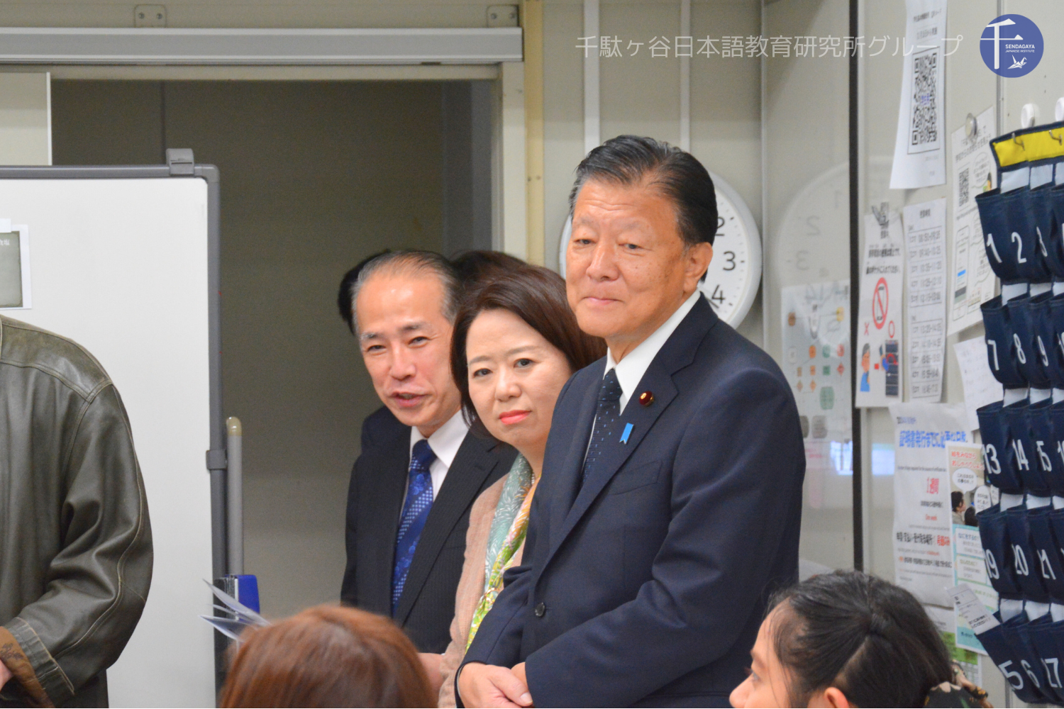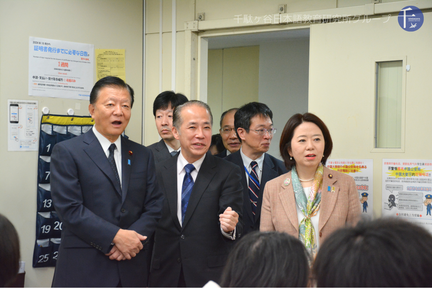 2025年12月10日(水)、自由民主党において外国人政策を検討する「外国人政策本部」の本部長を務める新藤義孝衆議院議員、「外国人制度の適正化等に関するプロジェクトチーム(PT)」の事務局長を務める自見はなこ参議院議員、内閣、自民党、文科省の皆様が、千駄ヶ谷日本語学校を視察されました。