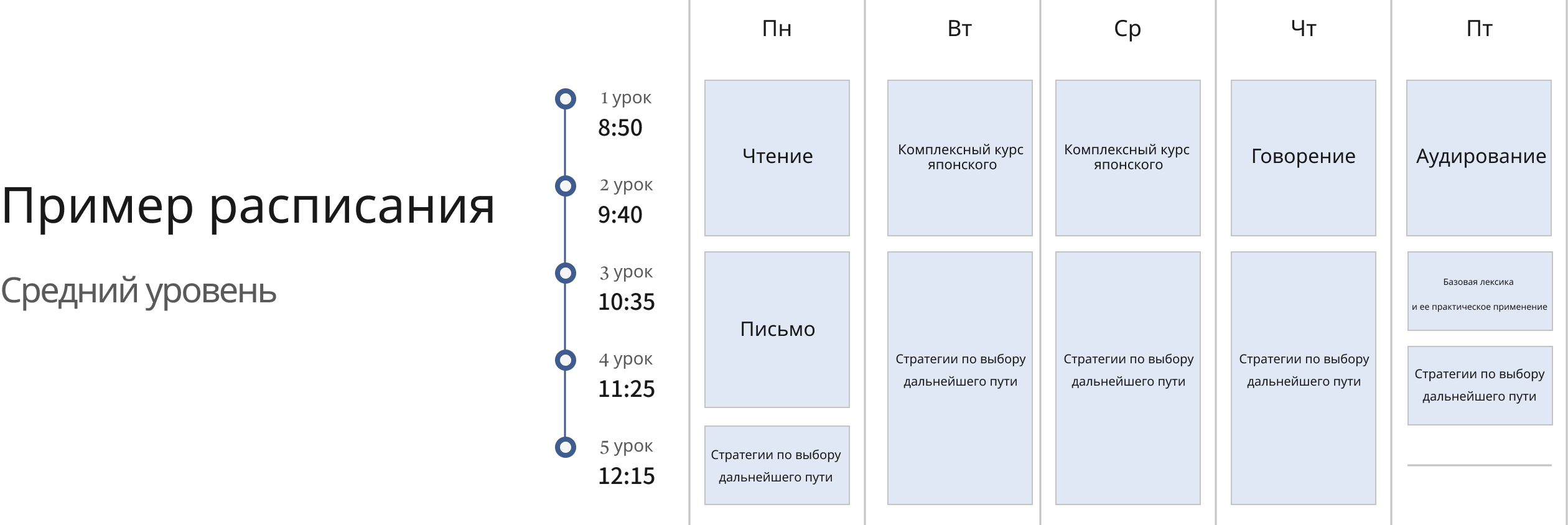 Вы овладеете японским языком, необходимым, чтобы поступить и учиться в институтах и колледжах. Студенты приобретают навыки практического, выразительного и логического мышления, необходимого для активного участия в занятиях.