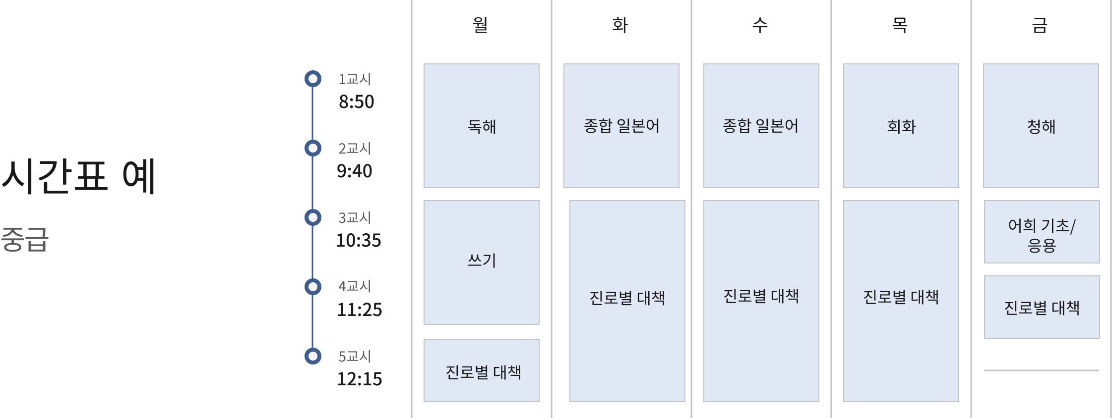 - 일본어뿐만 아니라 대학 진학에 필요한 기초과목(수학,이과,종합과목 등)의 수업도 있습니다.