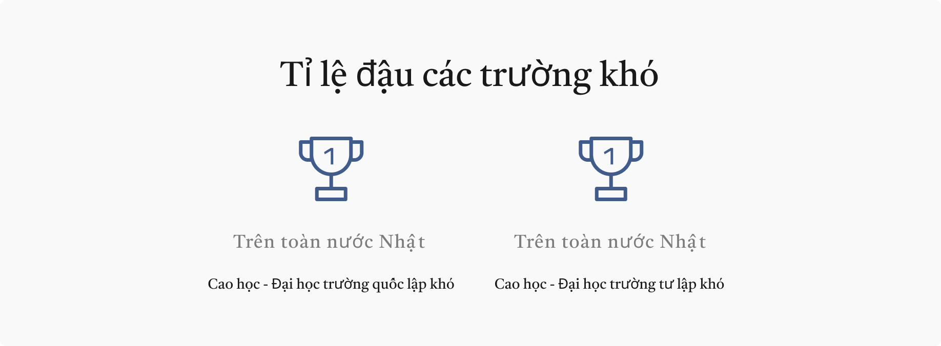 Cao học Đại học Tokyo, Cao học Đại học Nagoya, Cao học Đại học Osaka, Cao học Đại học Hokkaido, Cao học Đại học Giáo Dục Hokkaido, Cao học Đại học Tsukuba, Cao học Saitama, Cao học Đại học Kobe, Cao học Đại học Chiba, Cao học Đại Học Công Ngệ Tokyo, Cao học Đại Học Kanazawa, Cao học Đại học Thành phố Yokohama, Cao học Đại học Kobe, Cao học Đại học Saga, và nhiều trường khác.