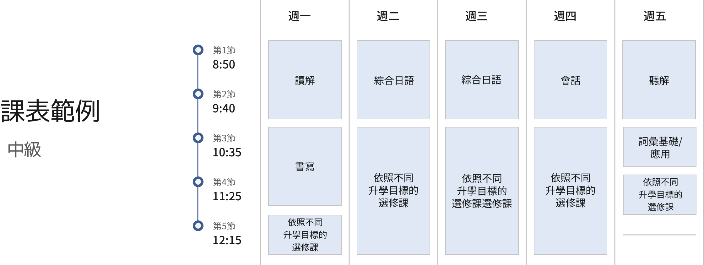 學生人數多,同樣的日文程度也會有進度快慢等的不同班級,同學能在真正適合自己程度的班級學習。